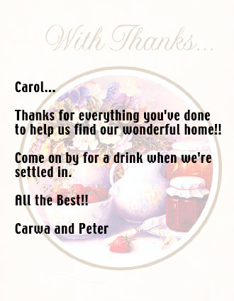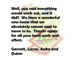 TestimonialsThe following testimonials were written by just some of my happy sellers and buyers. They have all been kind enough to give me permission to show you their correspondence. Their letters and words are very gratifying. It seems that my down-to-earth and honest approach has earned me many friends - I think that's fantastic!